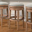 31" Beige And Natural Solid Wood Swivel Backless Bar Height Bar Chair is backordered and will ship as soon as it is back in stock.