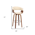 31" Cream And Brown Faux Leather And Solid Wood Swivel Low Back Bar Height Bar Chair