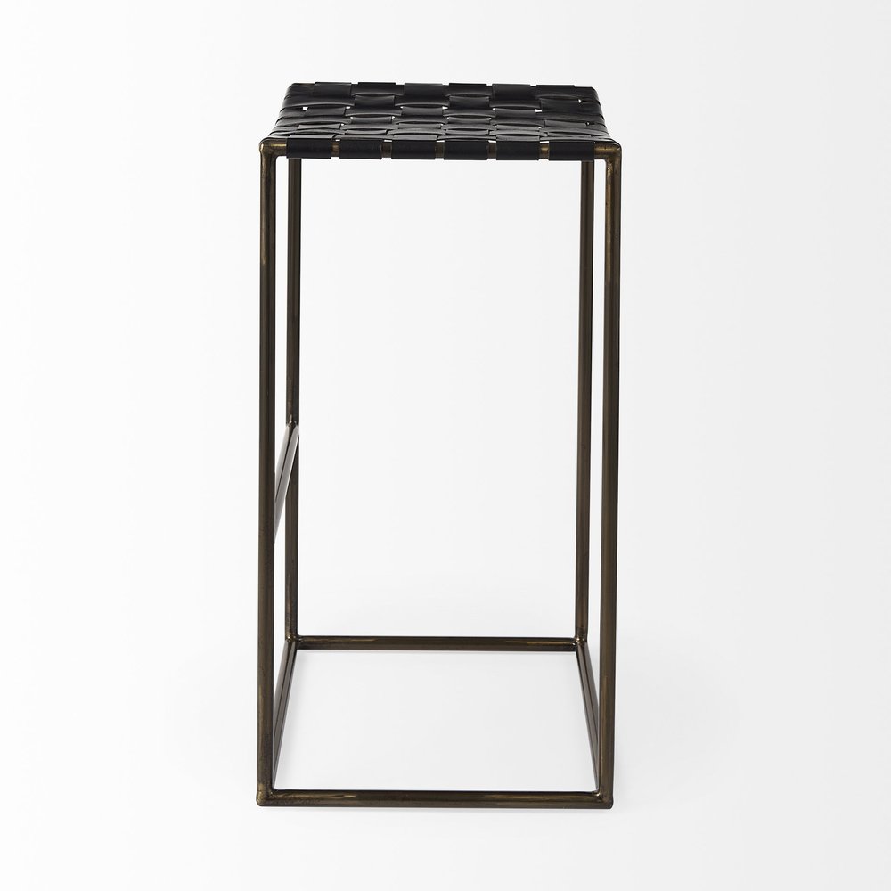 35" Brown and Black Leather and Iron Backless Counter Height Bar Chair is backordered and will ship as soon as it is back in stock.