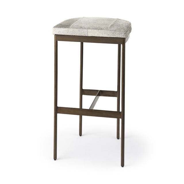 35" Gold Leather and Metal Backless Bar Chair is backordered and will ship as soon as it is back in stock.