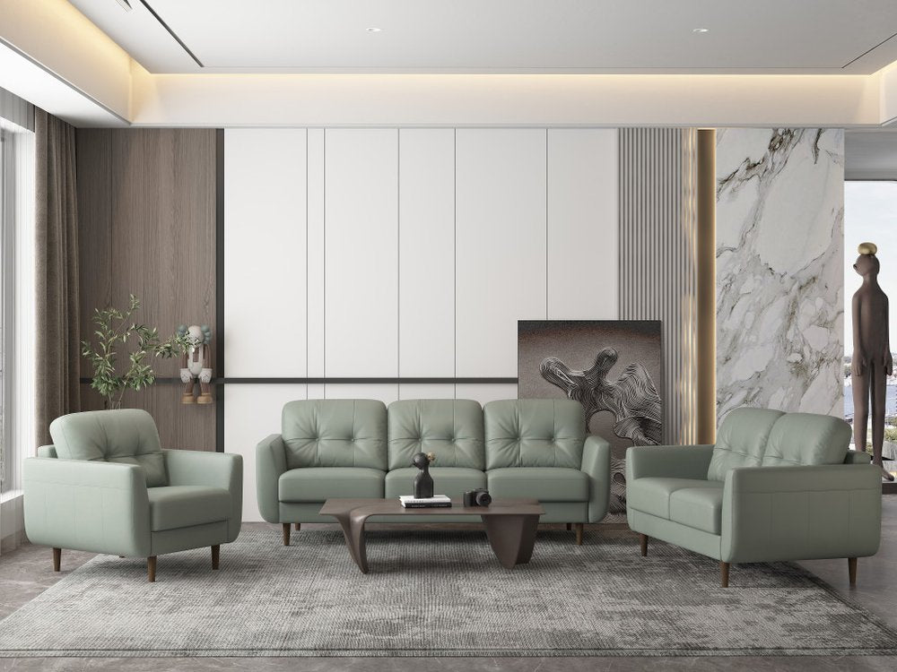 35" Gray and Black Genuine Leather Tufted Arm Chair
