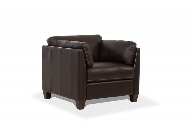 36" Chocolate and Black Genuine Leather Arm Chair is backordered and will ship as soon as it is back in stock.