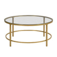 36" Gold And Clear Glass Round Coffee Table is backordered and will ship as soon as it is back in stock.