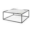36" White and Black Genuine Marble and Metal Square Frame Coffee Table