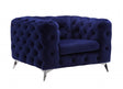 41" Blue and Black Fabric Tufted Arm Chair is backordered and will ship as soon as it is back in stock.