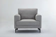 41" Light Gray and Black Linen Arm Chair is backordered and will ship as soon as it is back in stock.