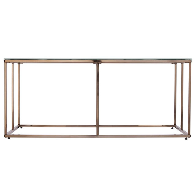 42" Clear and Champagne Glass and Metal Coffee Table is backordered and will ship as soon as it is back in stock.