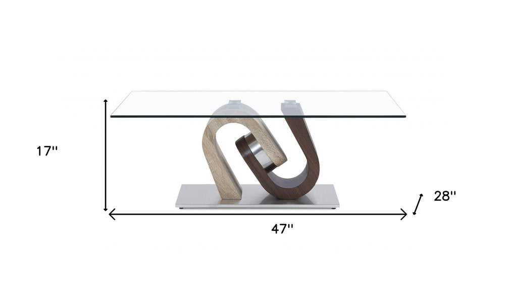 47" Clear And Oak Glass Coffee Table