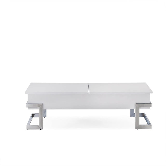 47" White and Silver Wood And Metal Lift Top Sled Coffee Table