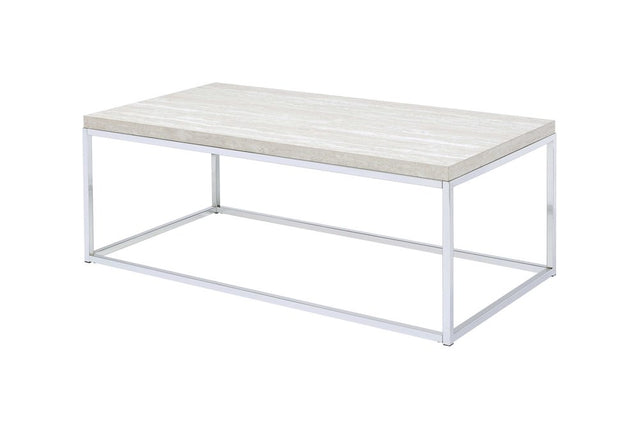 48" Chrome And White Oak Manufactured Wood And Metal Rectangular Coffee Table