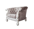 52" Ivory and Bone Fabric Damask Tufted Chesterfield Chair And Toss Pillows