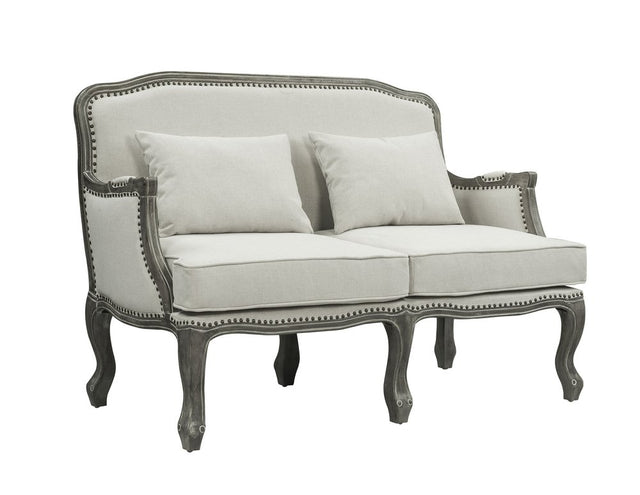 56" Cream And Gray Linen Loveseat and Toss Pillows