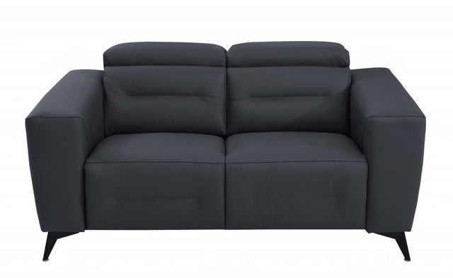 65" Gray And Black Italian Leather Power Reclining Loveseat