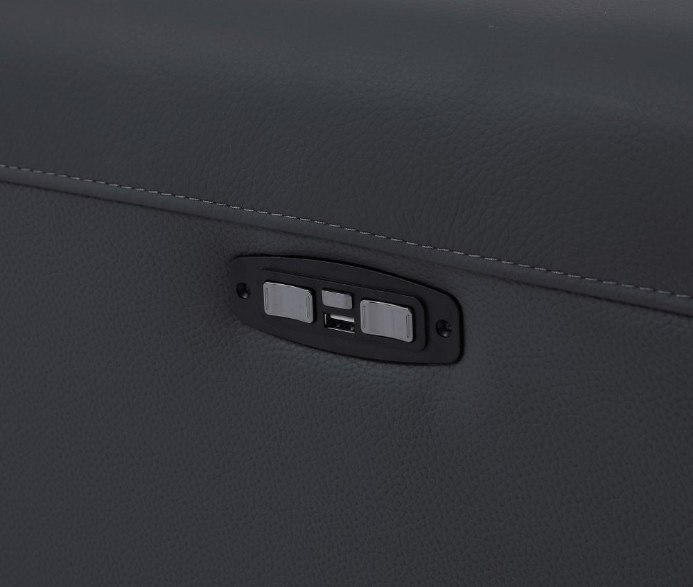 65" Gray And Black Italian Leather Power Reclining Loveseat - Dark Grey is backordered and will ship as soon as it is back in stock.