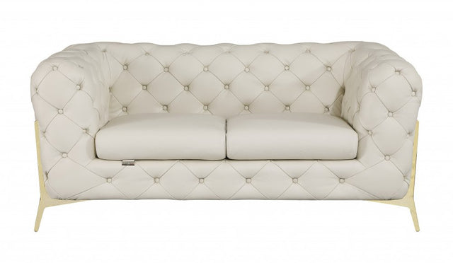 69" Beige And Gold Italian Leather Loveseat - Beige is backordered and will ship as soon as it is back in stock.