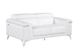 70" White And Silver Metallic Top Grain Leather Loveseat - White is backordered and will ship as soon as it is back in stock.