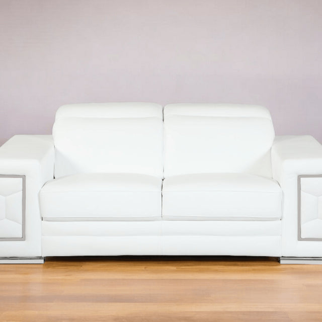 71" White Italian Leather Sofa With Silver Legs - White is backordered and will ship as soon as it is back in stock.