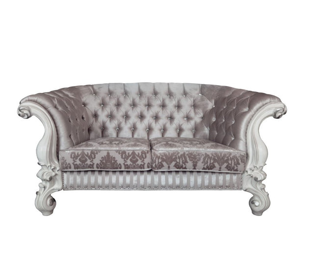 76" Ivory And Off White Velvet Loveseat and Toss Pillows