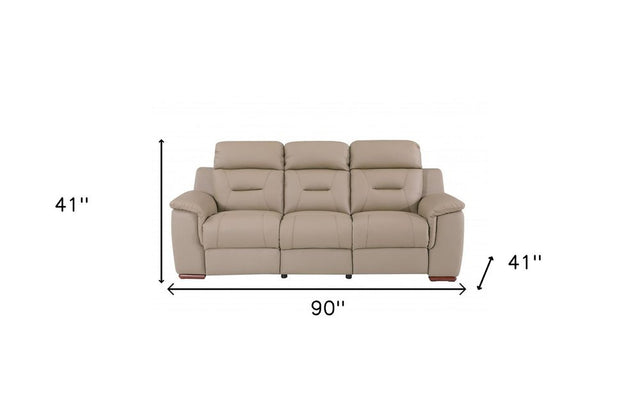 90" Beige Faux Leather Sofa With Brown Legs