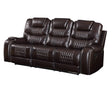 90" Brown Faux Leather Reclining Sofa With Black Legs is backordered and will ship as soon as it is back in stock.