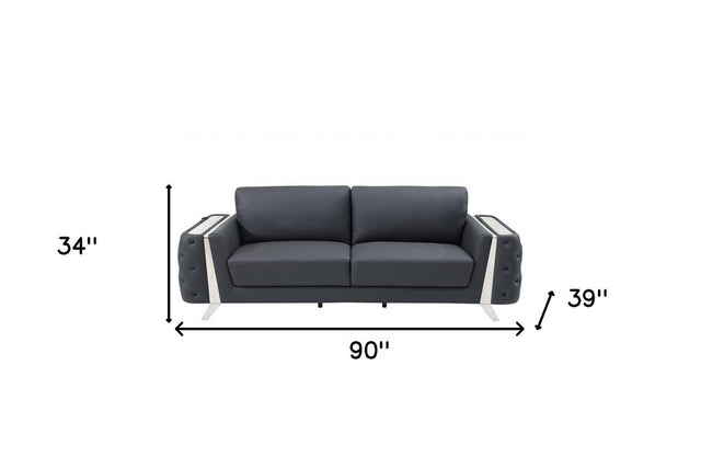 90" Gray Italian Leather Sofa With Silver Legs - Dark Grey is backordered and will ship as soon as it is back in stock.