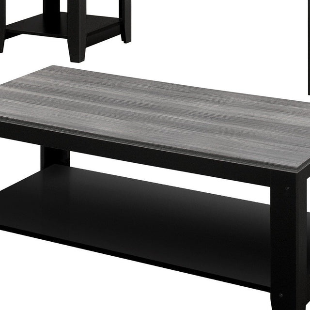 Set of Three 42" Gray And Black Coffee Table With Shelf