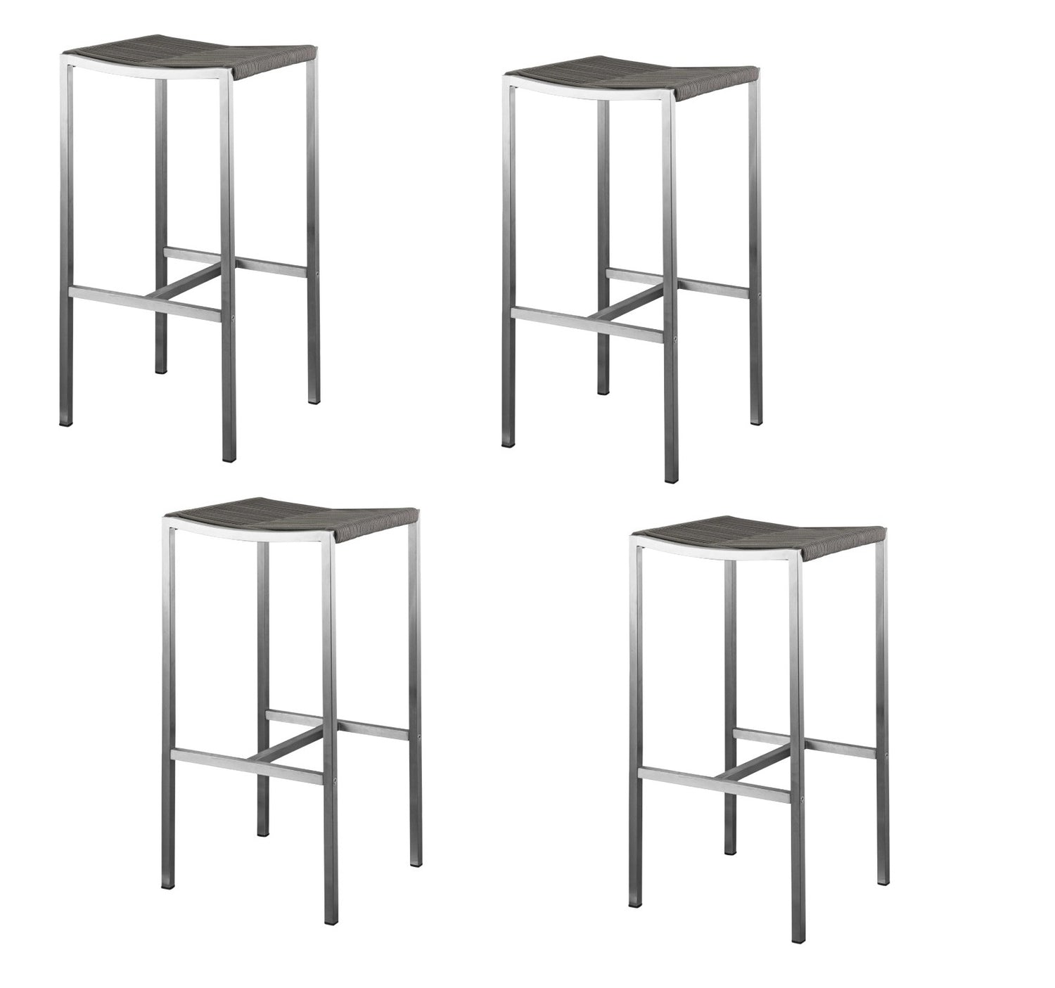 Set of Four 28" Brown and Silver Iron and Steel Backless Counter Height Bar Chairs