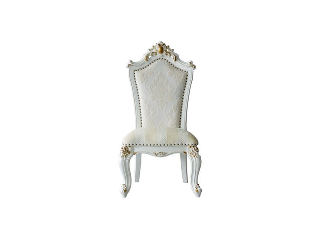 Set of Two 27" Beige and White Faux Leather Damask Side Chair