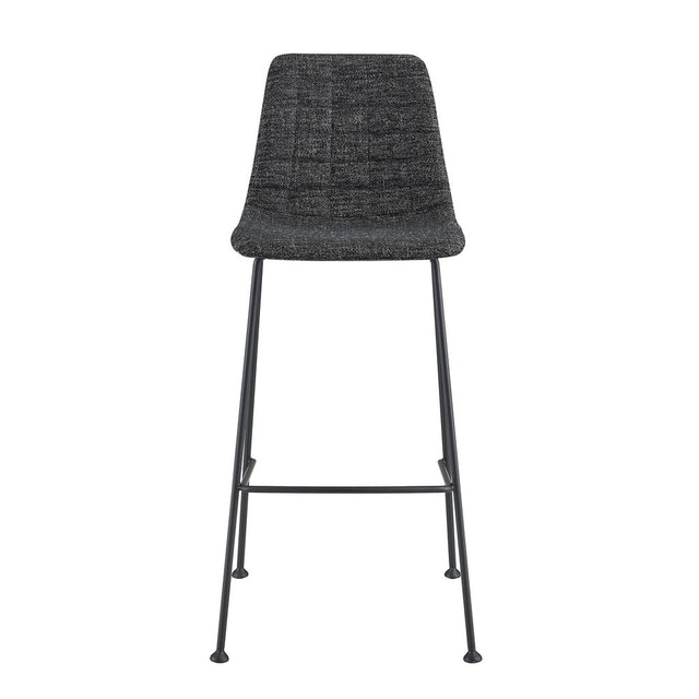 Set of Two 30" Black Fabric and Steel Low Back Bar Height Bar Chairs