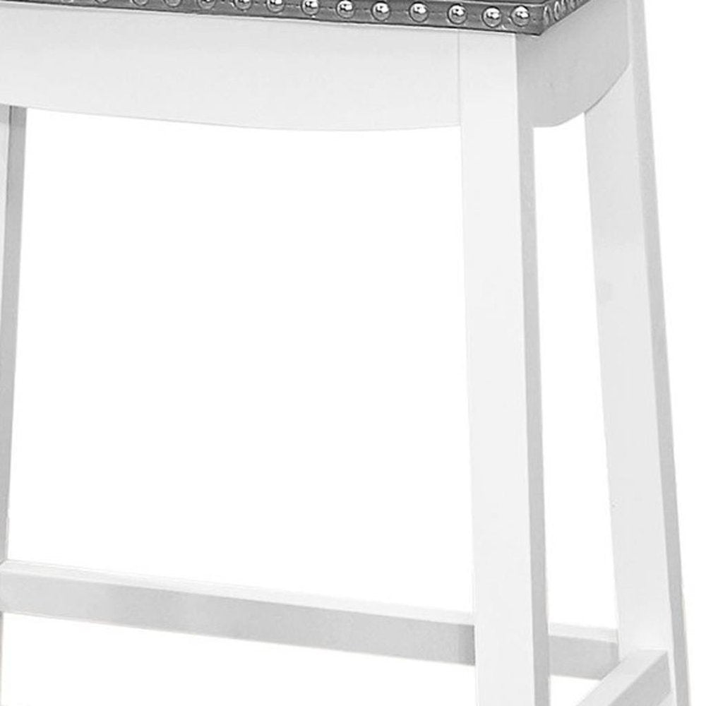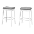 Set of Two 30" Gray and White Faux Leather and Solid Wood Backless Bar Height Bar Chairs