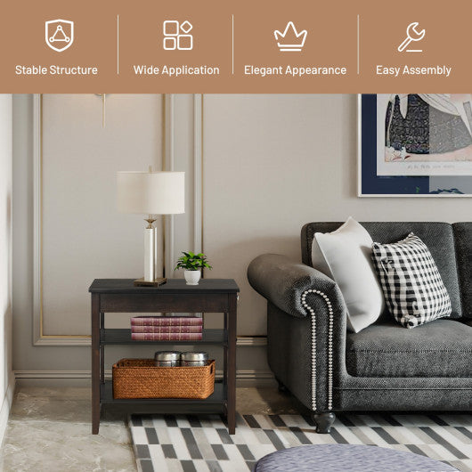 Side End Table with Drawer and 2-Tier Open Storage Shelves for Space Saving-Brown - Brown is backordered and will ship as soon as it is back in stock.
