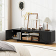 ● Ample Storage Space: This TV media console is the perfect storage solution with 2 open shelves and 2 side cabinets that swallow up your media mess. It can provide easy access to your media supplies while keeping messy sundries out of sight.
