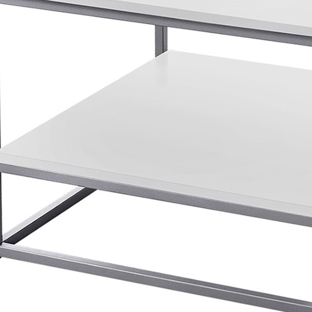 Set of Three 42" White And Silver Metal Coffee Table With Shelf