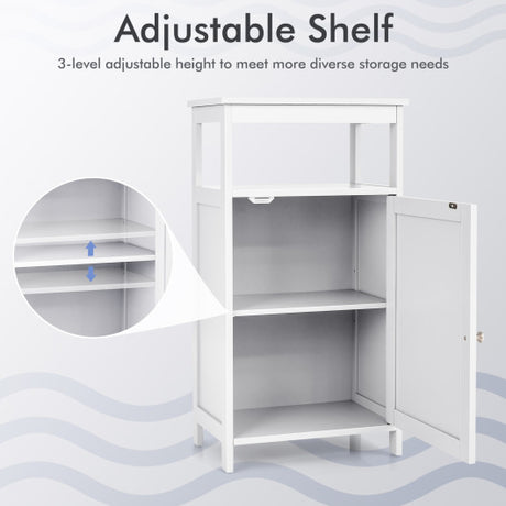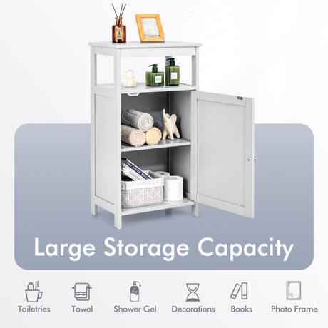 Bathroom Freestanding Adjustable Shelf Floor Storage Cabinet-Gray