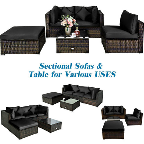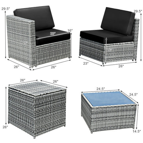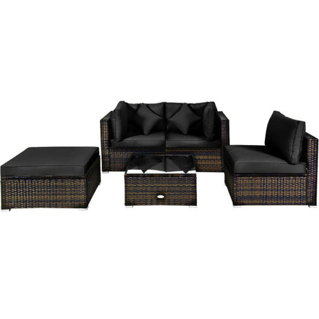 5 Pcs Outdoor Patio Rattan Furniture Set Sectional Conversation with Cushions-Black