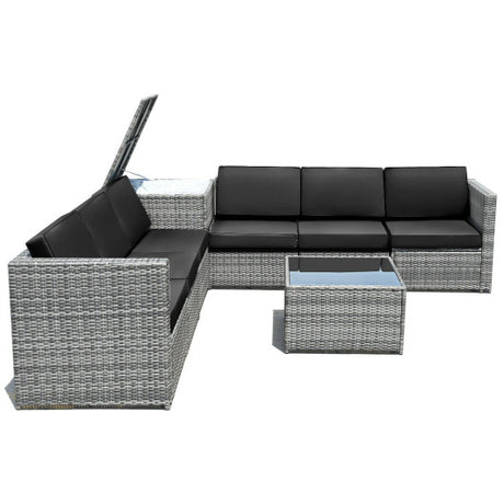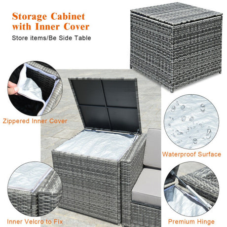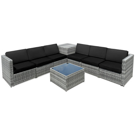 8 Piece Wicker Sofa Rattan Dinning Set Patio Furniture with Storage Table-Black
