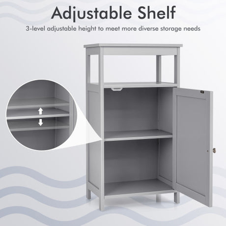 Bathroom Wooden Floor Cabinet with Multifunction Storage Rack-Gray