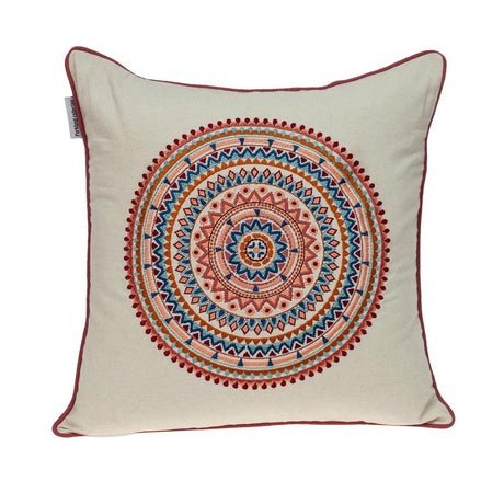 18" X 18" Beige and Blue Abstract Indoor Outdoor Throw Pillow