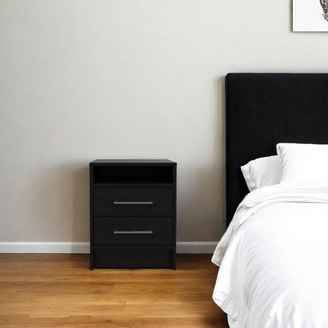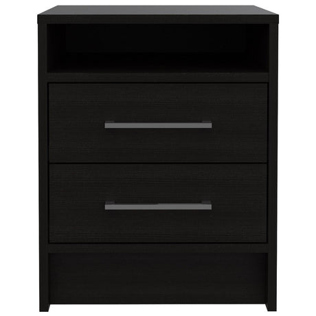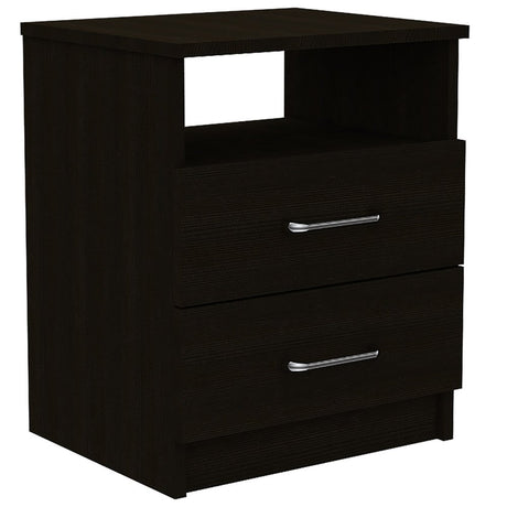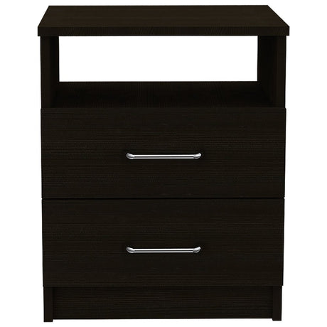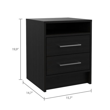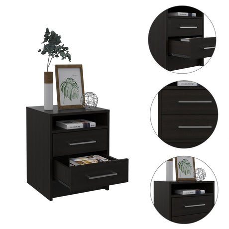 Nightstand Set of 2 Bamboo End Table with 2 Open Shelves and Drawer-Set of 2