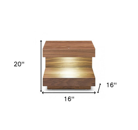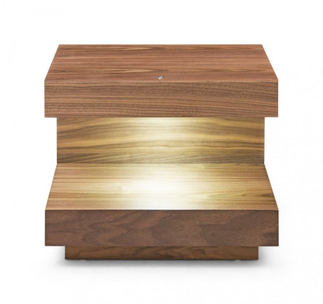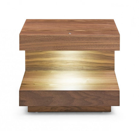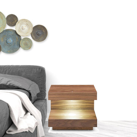 Contemporary LED Lit Walnut Nightstand with One Drawer