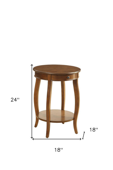 24" Brown Solid Wood Round End Table With Shelf
