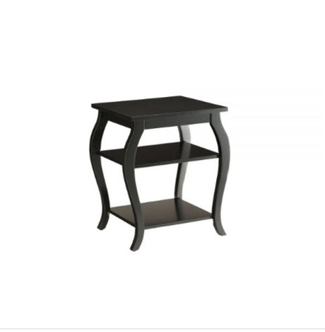 23" Black Wood Bow Leg End Table With Two Shelves