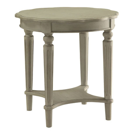24" Off White Solid Wood Oval End Table With Shelf
