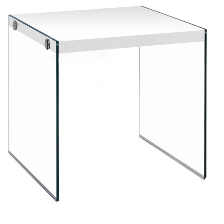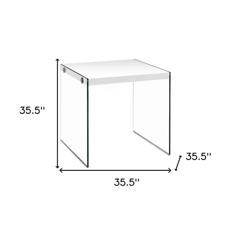 35.5" Glossy White Particle Board And Clear Glass Two Pieces Nesting Table Set