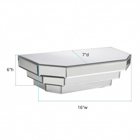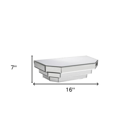16" Silver Mirrored Glass Hanging Dimensional Floating Shelf