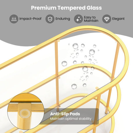 3 Tier TV Stand Console Table with Tempered Glass Shelves for Living Room-Golden