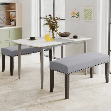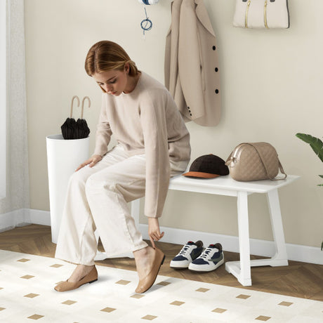 42 Inch Modern Entryway Bench Long Dining Bench with Rubber Wood Legs-White