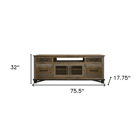 80" Gray Mango Solid Wood Enclosed Storage Distressed TV Stand