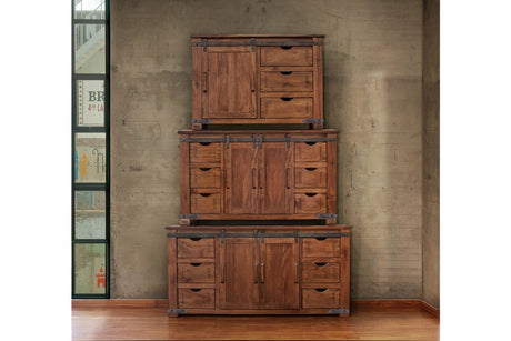 76" Brown Solid Wood Cabinet Enclosed Storage Distressed TV Stand
