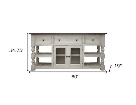 60" Ivory Solid Wood Open shelving Distressed TV Stand